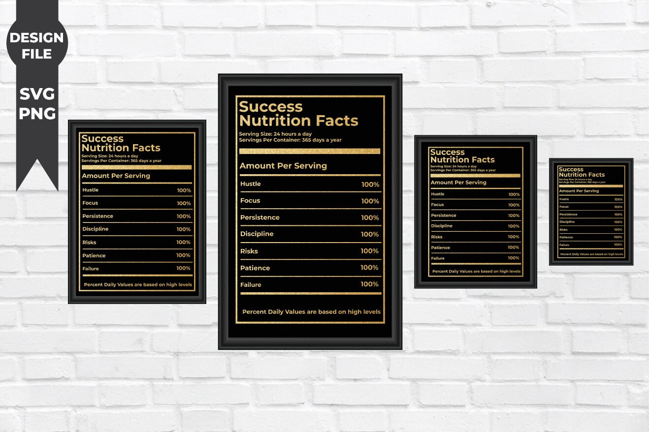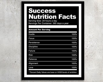 The education and academic affairs department at the hospital for special surgery offers five nutrition facts you should keep in mind daily: These are set up as cut files for cncs, laser engravers, vinyl machines etc. Success nutrition facts by business realm redirects your focus to the vital elements of success so you can make your life exceptional… reignite your inner fire when you feel unmotivated or drained by looking at this masterpiece and watch your unconscious hustle and focus like never before to achieve your goals and live the life you deserve. This is a fitted female style. Success nutrition facts, hd canvas print, inspirational success quote art for wall this inspiring canvas print is the perfect home accessory to style boring blank walls and remind you of the recipe to success.